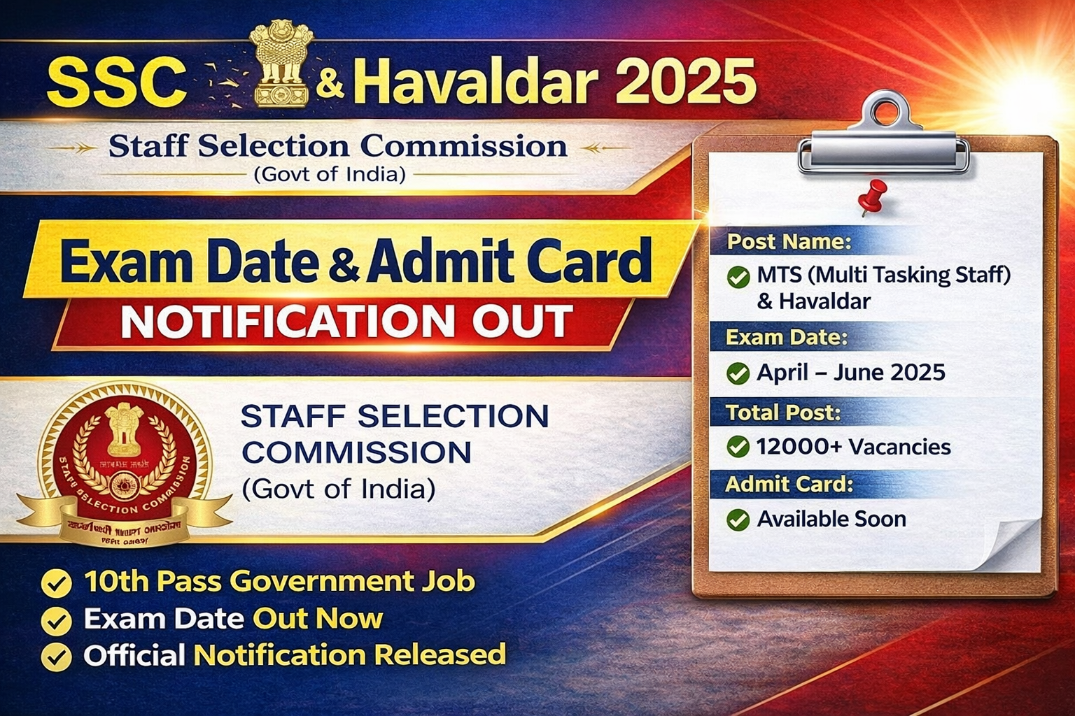 Staff Selection Commission (SSC), has released the Exam City Details on its official website for the SSC MTS / Havaldar Examination 2026. The exam will be conducted in 04-15 February 2026, and the last date to submit the application form was 24 July 2025. Candidates can check their Exam City Details using their Enrollment Number, Registration Number, or Date of Birth by logging into the portal. The direct link is provided below.